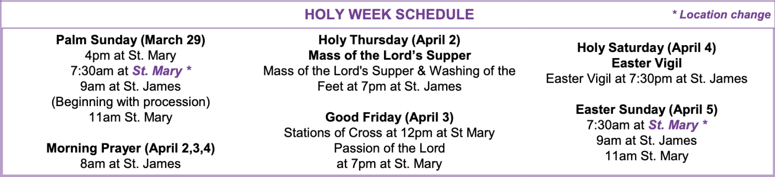 Please see the schedules below and join us when you are able. Also see our bulletin insert with even more details